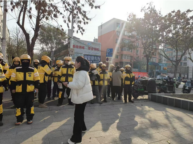 11月7日,银州区人社局联合区人力资源事务服务中心,在博物馆广场开展新业态职业伤害防护知识宣讲活动,为40余名一线美团骑手送上专属权益保障指导。